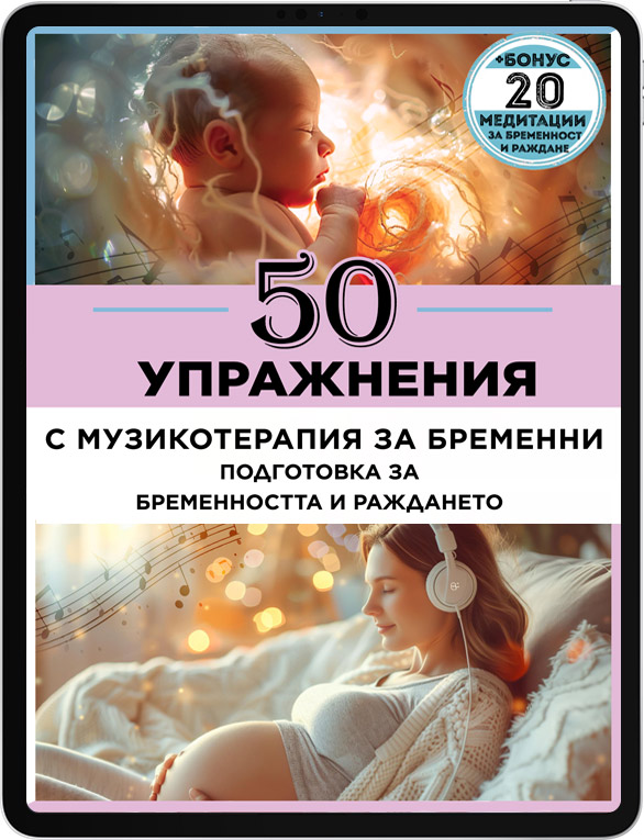 Трети триместър: Подготовка за раждането чрез специфични музикални методи, които помагат за управление на болката и стреса по време на раждането.